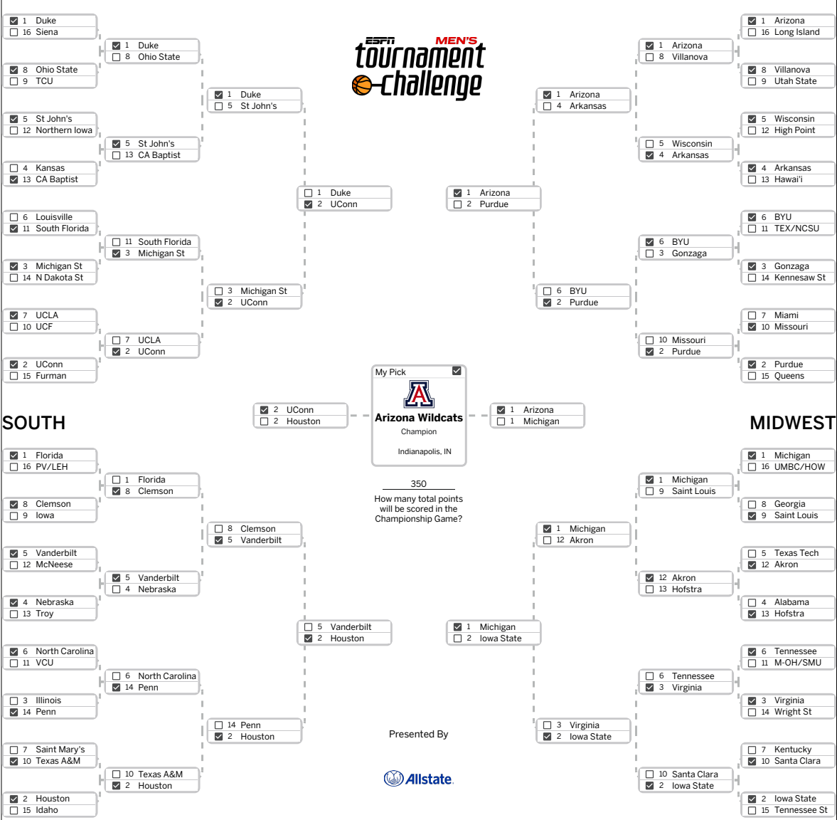 I will be the perfect bracket winner.Cap this