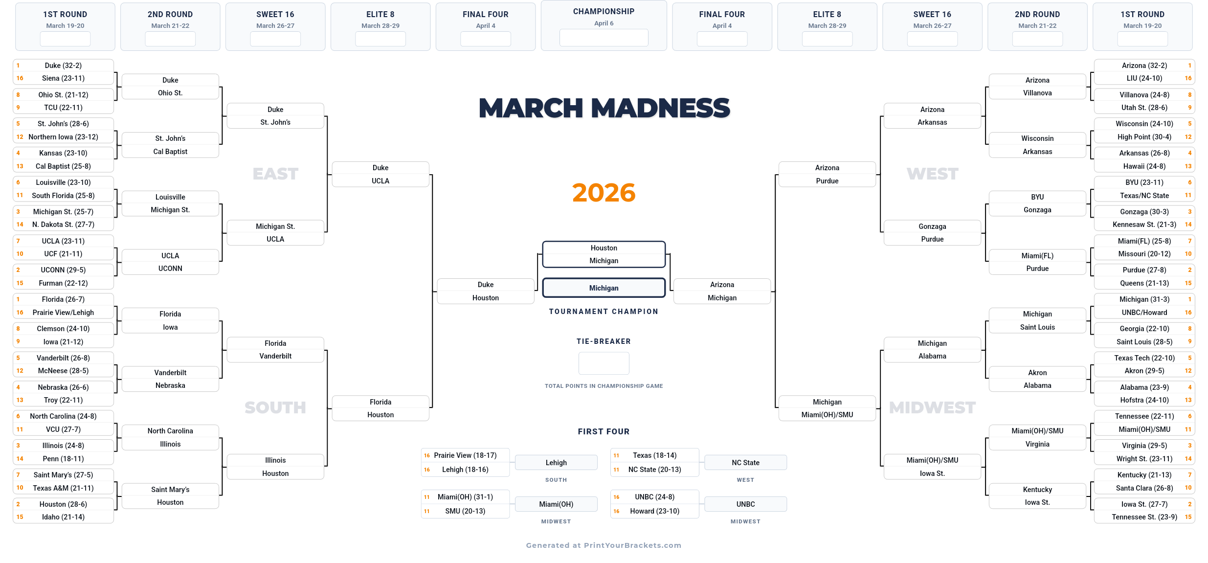 Terrible OP, but I guess I was too slow.March 17th16Howard vs 16UMBC 6:4011NC State vs 11Texas 9:15March 18th16Lehigh vs 16Prarie View 6:4011SMU vs 11Miami (Oh) 9:15Post bait brackets in this thread.Join our bracket group with your real bracket.>https://fantasy.espn.com/tc/sharer?challengeId=277&from=espn&context=GROUP_INVITE&edition=espn-en&groupId=3d4f22c6-0701-477c-b416-fa38eaa0e79f&joinKey=1457477e-1ad1-3f99-9195-047b804baa7f>password: PurdooPrev >>153724805