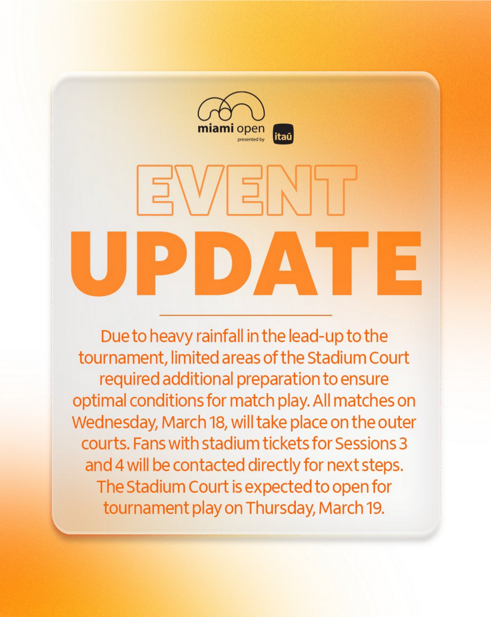 my miami watching experience so far>rained all day, everything is cancelled >too many matches, everything i wanted to watch is scheduled for late night>it's raining again