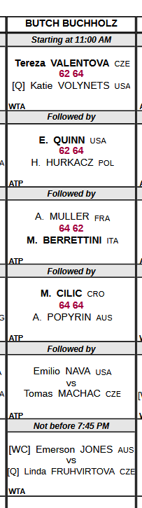 >>153938541as well asMuchova vs Osorio Fernandez vs SelekhmetevaRybakina vs Putintseva Willy Tugger vs AlexandrovaFranimal vs Ugly Jesswhat a great day