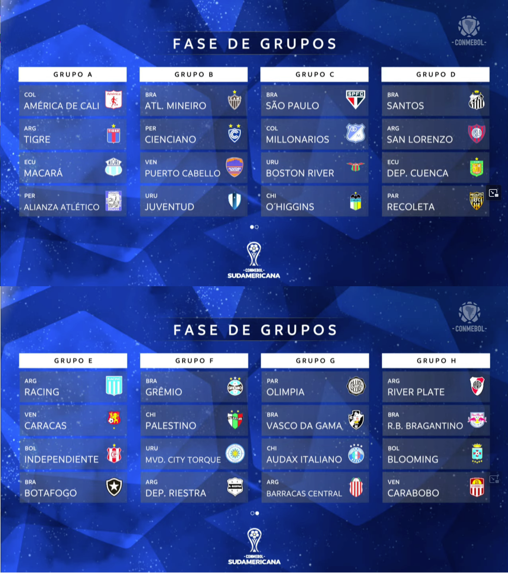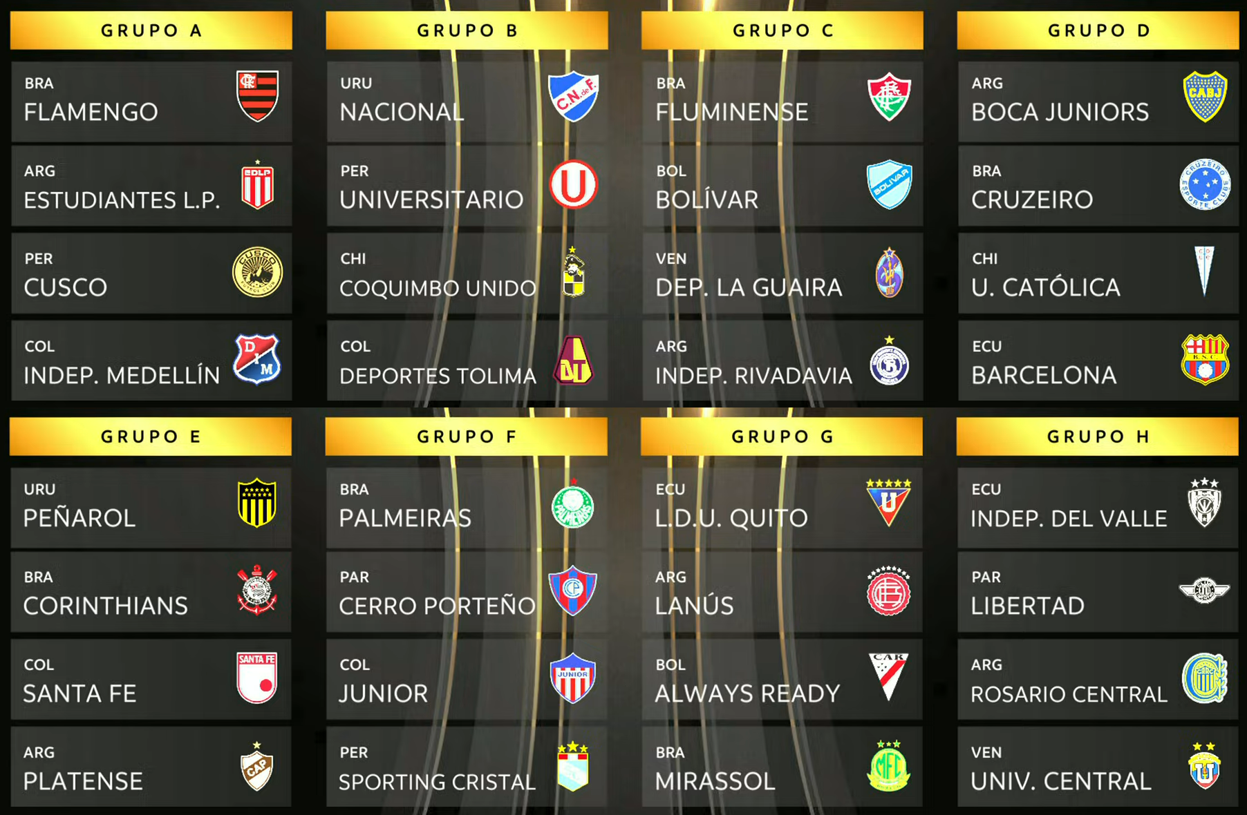 Please bookmark, you read it here first:FlamingoStudentsDimCuzco(lmao)TolimaUniverstiarioNacionalCoquimboFluminenseRivadaviaBolivarLa GuairaCruzeiroBoca BarcelonaCatolicaCorinthiansPlatenseHoly WasPenaharolPalmtreesJuniorCerroSportingLanusLDULook:SunAlways readyCentral RosaryJugos del valleFreedomUCV