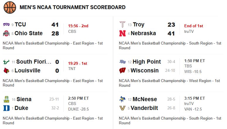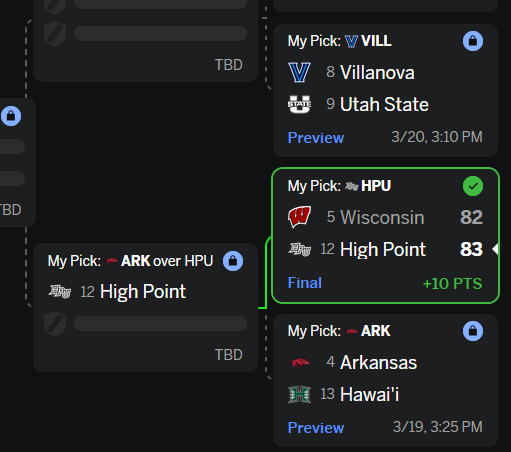None of these were popular upset picks besides USF, wait until later.