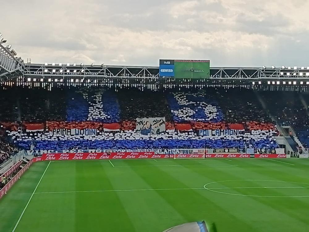 Atalanta's tifo today honouring Marten De Roon breaking the record of all-time appearances for Atalanta, was held by Gianpaolo Bellini
