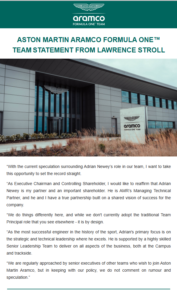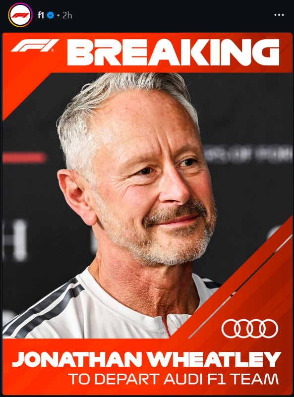>[Medland] BREAKING: Audi confirms Jonathan Wheatley will depart the team with immediate effect "due to personal reasons", with Mattia Binotto taking on team principal responsibilities.>Wheatley has been heavily linked with the team principal role at Aston Martin #F1https://twitter.com/i/status/2035007369176850658