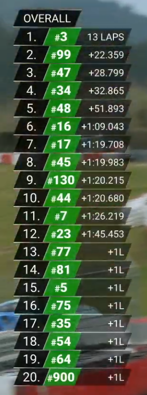 >>153952099p29, first in his class (they were the only one in their class on track because fabiennes team kwabbed during quali and destroyed the car or some shit). no idea if they overtook cars of higher classes or not