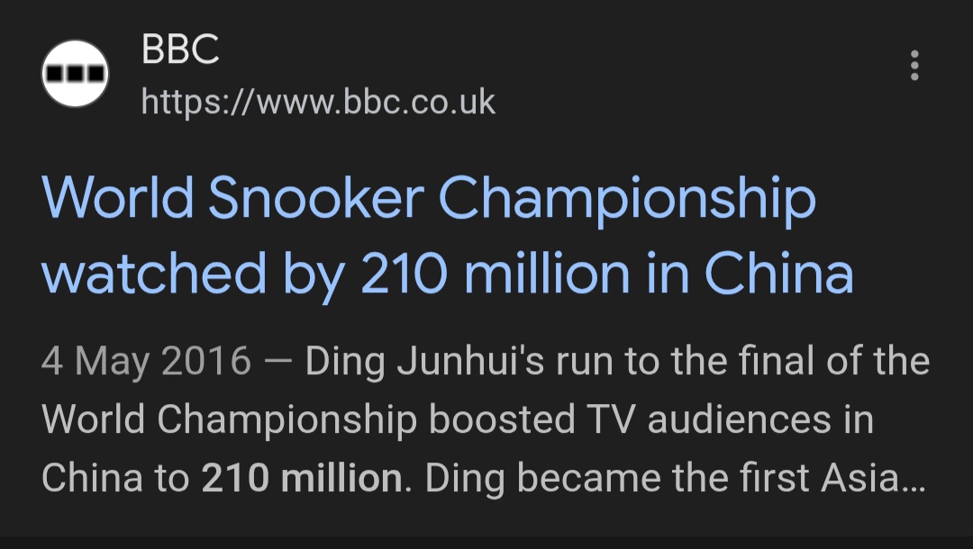 The number one supporter of Trump in Portugal is also a massive snooker fan and he tries to convince people every year, in his political podcast, to watch snooker and the world series or whatever he is called. He seems to understand the subject, and I think he did say that O'Sullivan was the GOAT, possibly in all sports. Much above Messi and Ronaldo in his sport than they are in theirs, at least relatively to the average and world class snooker and football players.