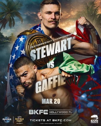 Get knuck'd up tonight as BKFC is back with BKFC 87: Stewart vs. Gaffie from theHollywood Seminole Hard Rock Hotel & Casino in Hollywood, Florida!Prelim link: https://www.youtube.com/watch?v=AtCS2c_ajHkFubo Sports Network link: https://www.fubosportsnetwork.com/Prelim card:>Chris Garcia vs. Chancey Wilson>Chino Blume vs. Alex Davis>Ernesto Suarez vs. Victor FlorMain card:>Leonardo Perdomo vs. Rashad Coulter>Bryan Duran vs. Derek Perez>Rosalinda Rodriguez vs. Shelby Cannon>Sabah Homasi vs. Leonel Carrera>Jeremy Smith vs. Donald Sanchez>Armando Rodriguez vs. Roberto Armas>Jancarlos Rivera vs. Mike Hansen>Kai Stewart (c) vs. Nicolas Gaffie for the BKFC Featherweight Championship
