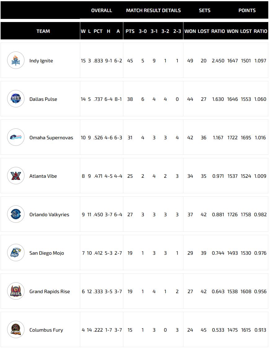 Dallas Pulse 3-2 Atlanta Vibe (26-, -19, -19, 25-, -8)
