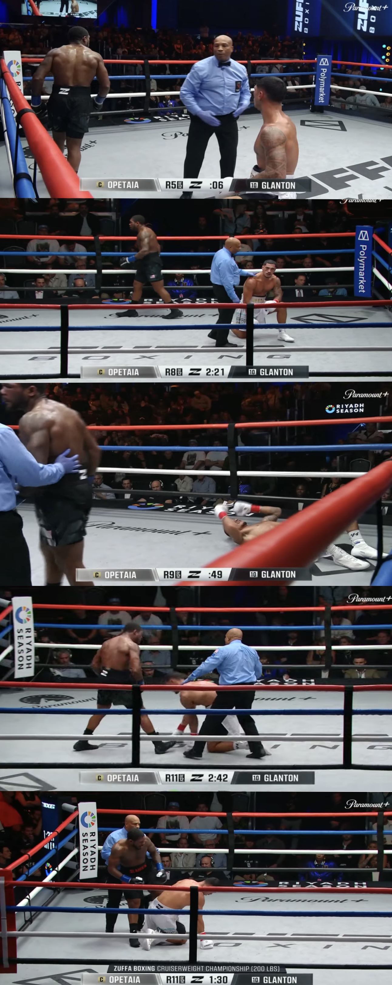 3nd of 6, Ammo is cooked. He bet everything on a big barrage and ended up eating two counter hooks. He ran for the last 1:30 of the round, the ref saved him by breaking while Ammo was boxed in the corner. His only hope is a lucky heem.