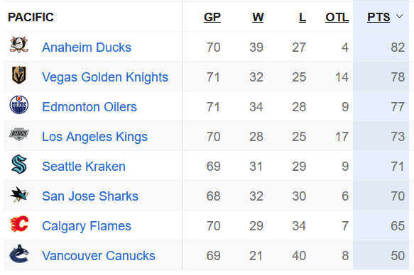 its a shame the rest of the pacific sucks because in any other division, vegas would miss the playoffs