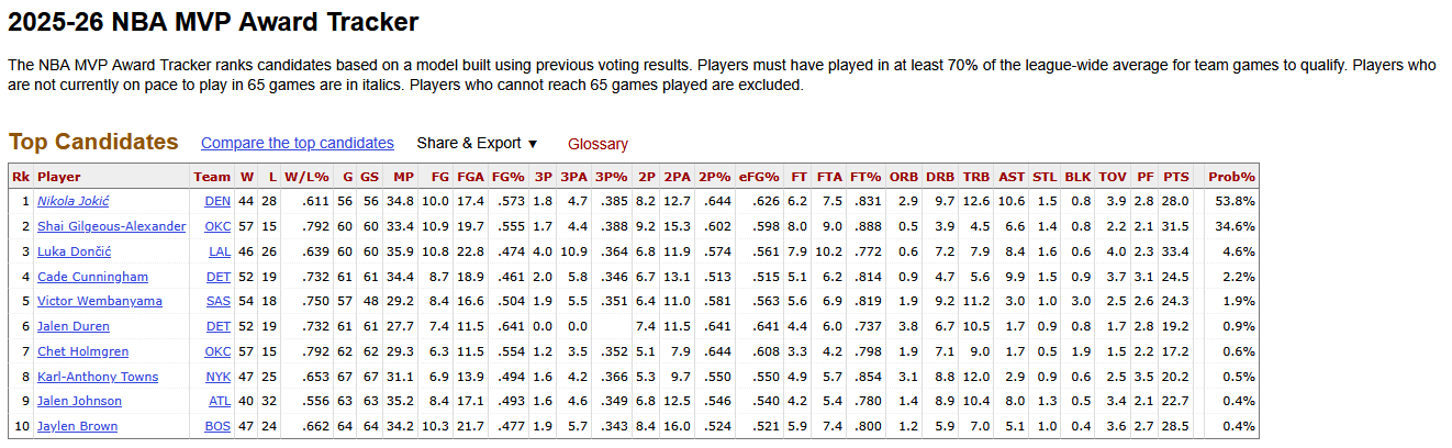 Vorpbros im thinking 40/15/10 tonight.Also it seems jokic mvp case is dead foe the year. Looks like a 3 man race with sga as favourite and luka as second. Wemby a not so distant third.