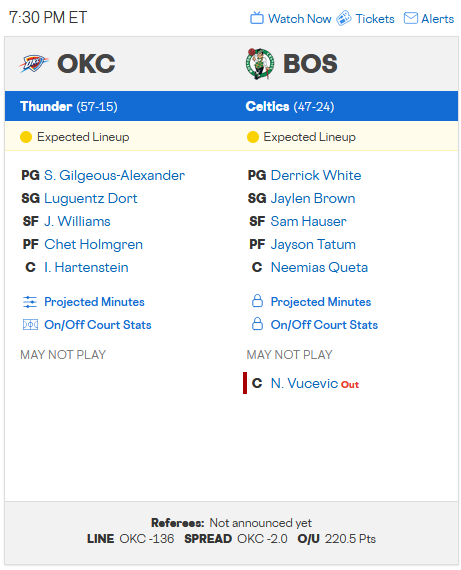 This will be OKC's first fully healthy game all season. Expect a blow out