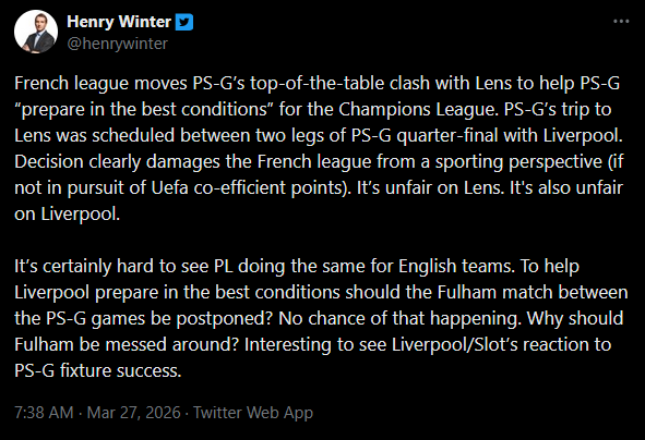 >The French League Federation has postponed the Lens-PSG match despite Lens's objection.>It does so to allow PSG to better prepare for the tie vs. Liverpool.will be all the more satisfying when we beat them