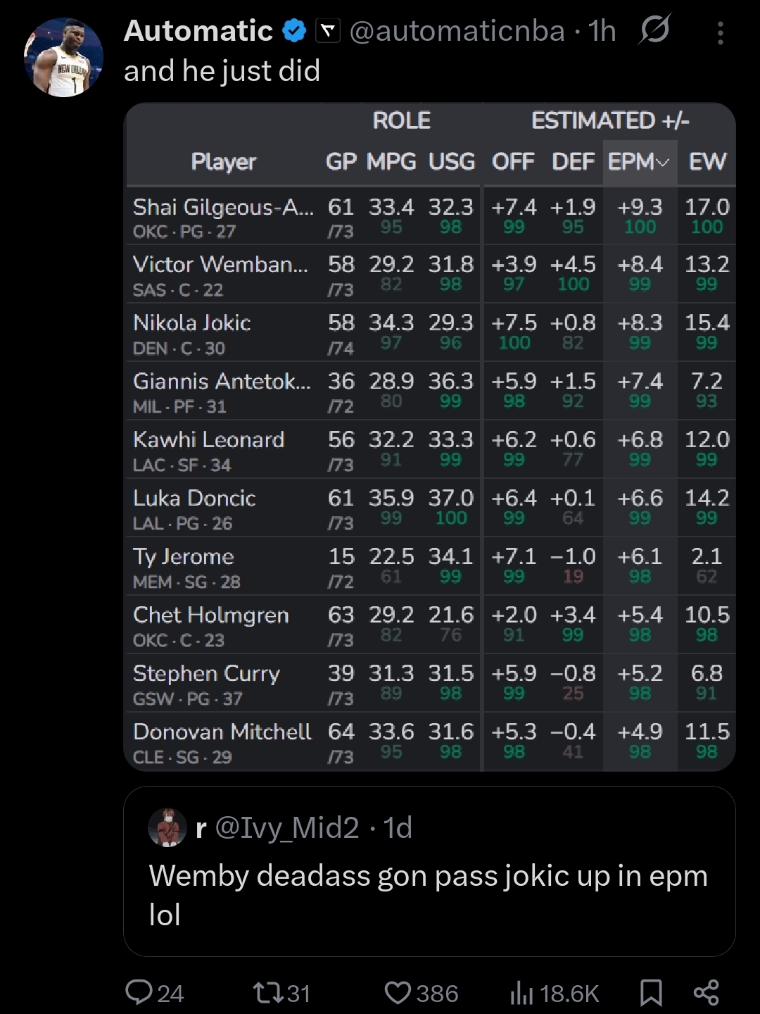 If Shai unironically starts getting good at that Pull Up 3 shit, im genuinely scared, his development and growth is already unfair, that shit would be straight up stupid