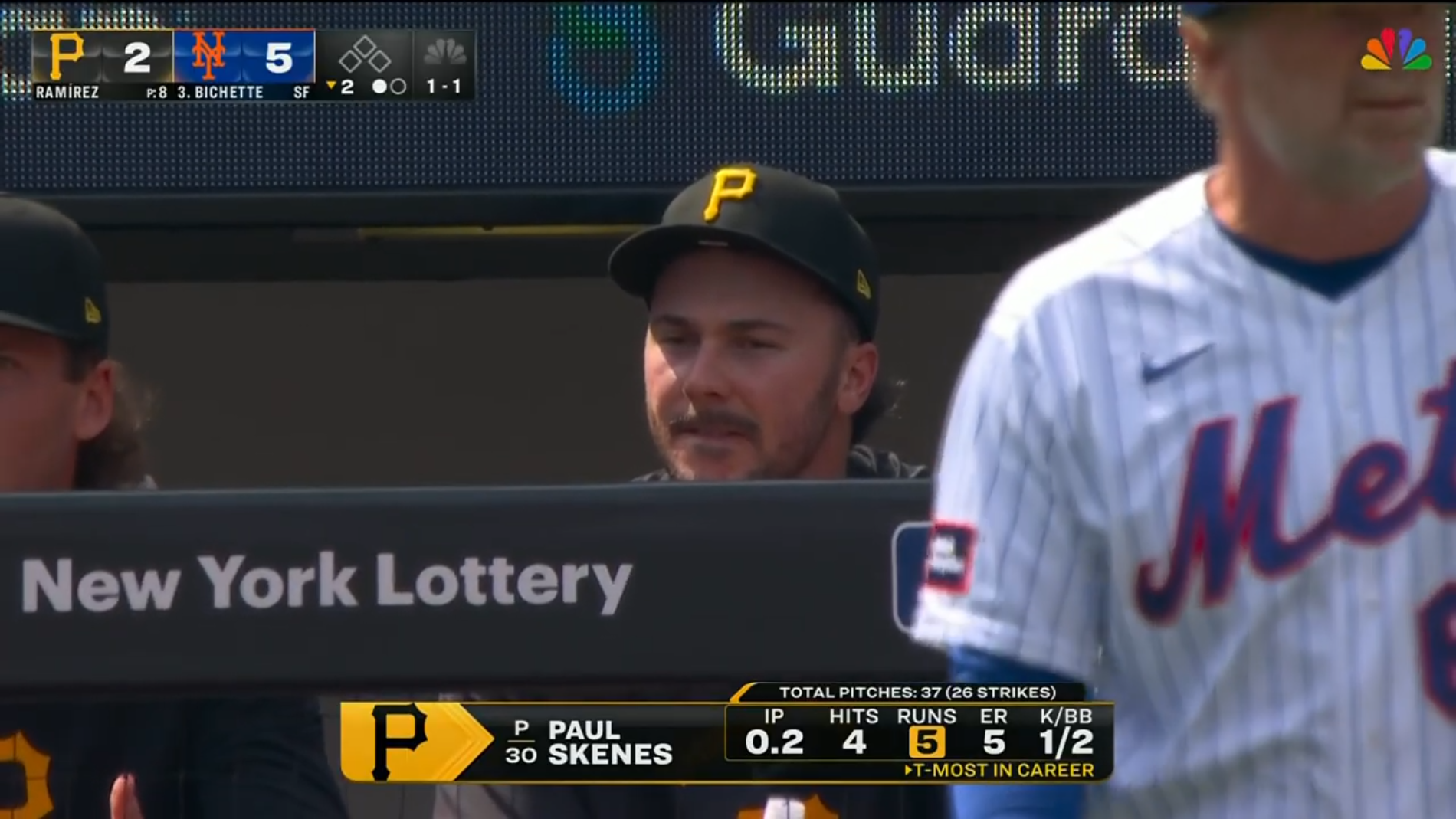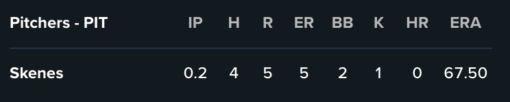 >skenes out in the first inning
