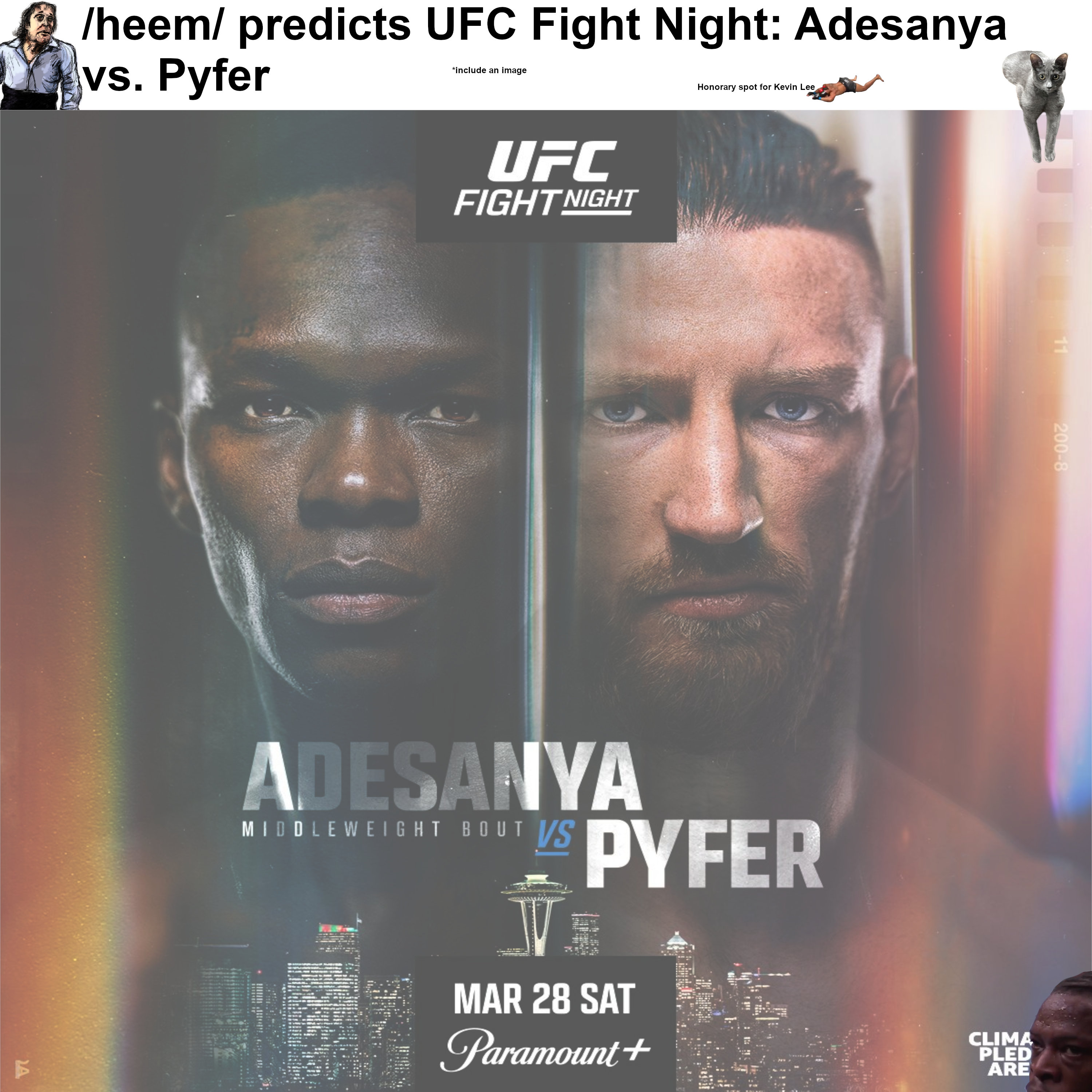 The Master, Adesanya, faces the Trickster, Pyfer. Wisdom vs Wit