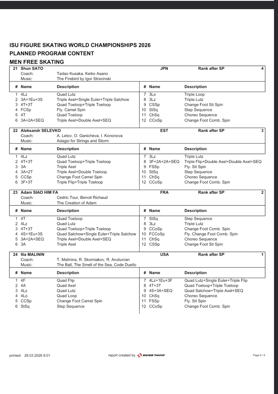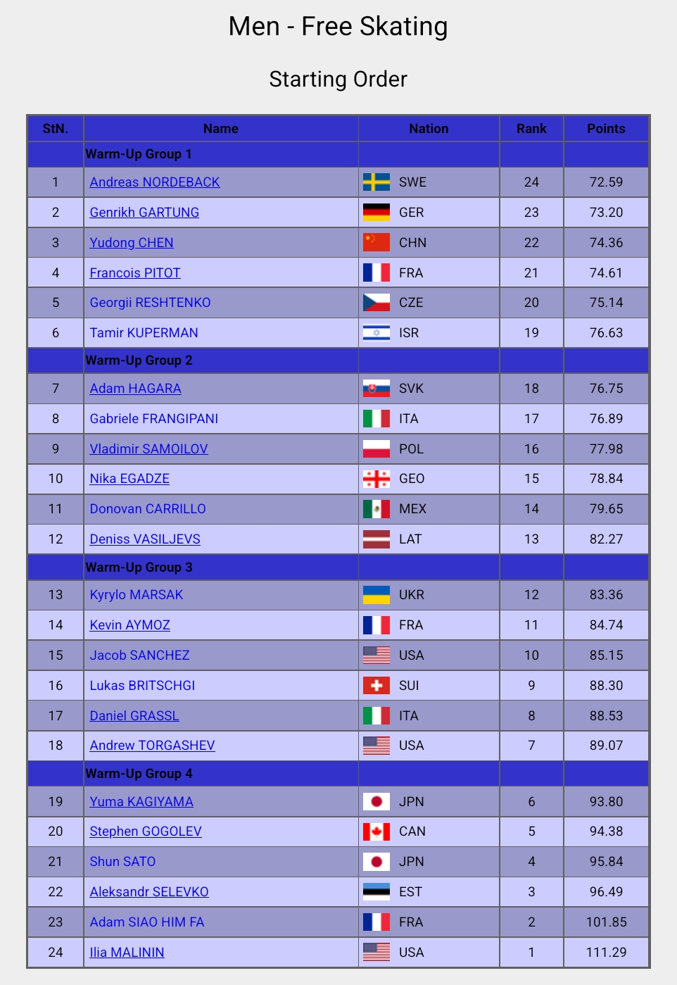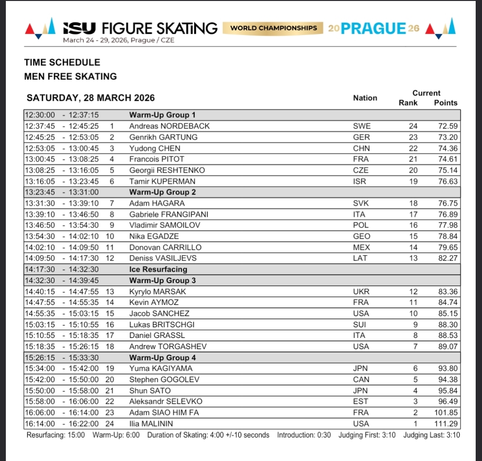 men's free skate starting