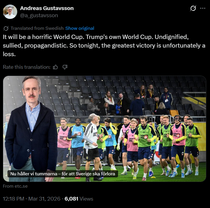 sweden shouldn't even be playing today, they lucked out on some nations league bullshit, they don't deserve the wc spot desu