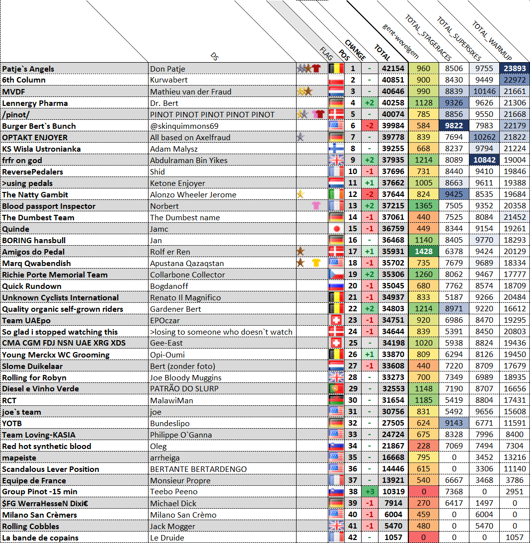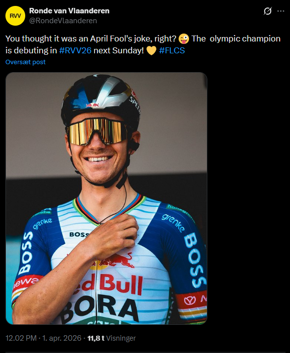 hope we get a cool elite group in the de ronde of pogacar, van der poel, van aert, pedersen and some other guys all battling on equal footing, that would be really fun