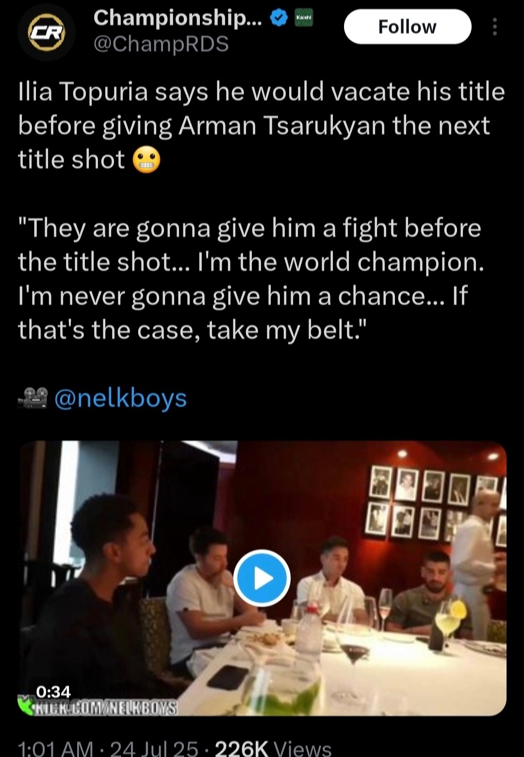 >tom vs jones>justin vs tupperware >peleton vs gone >shawn vs zahabibibibi>mauricio vs chandler>bo vs dickhouse >steve garcia absolut yard burner uvvah card b talmbout the starts of yesterday and today