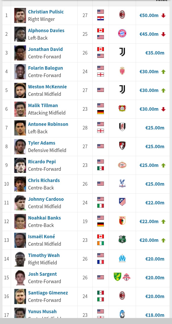 Josh Sargent seems way to high. He's not even young he's 26