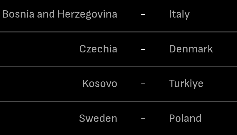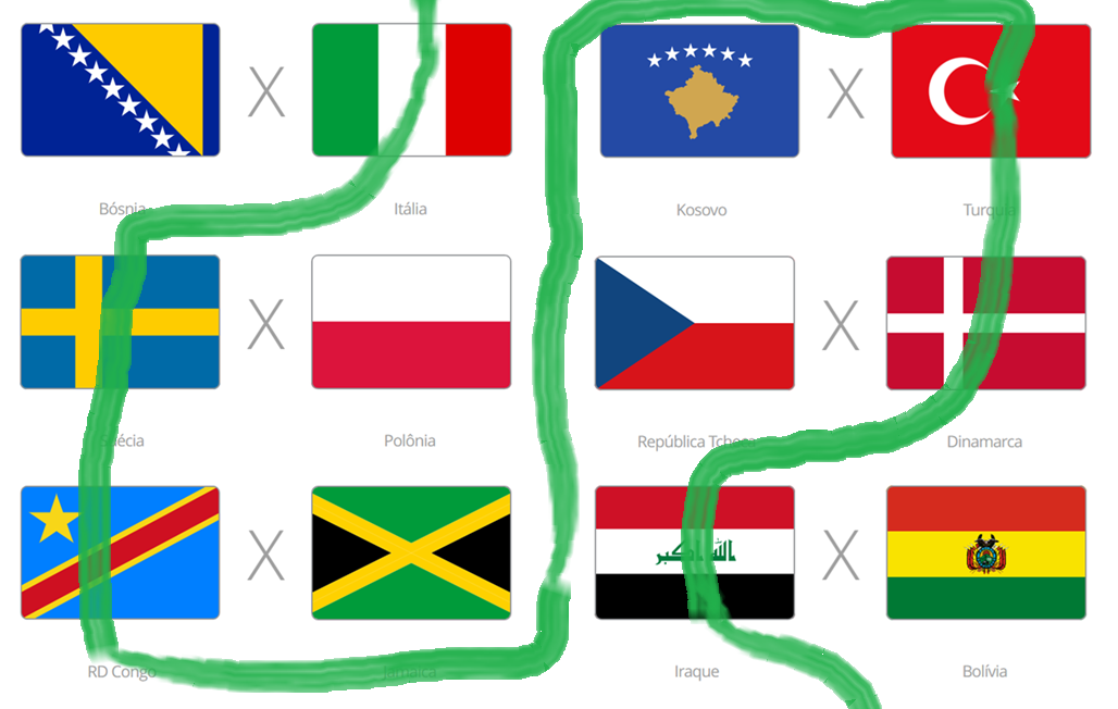 >Italy wins 1-1>Turkey wins 1-4>Sweden wins 1-0>Denmark wins 0-2>DRC wins 5-2>Olivia wins herpes