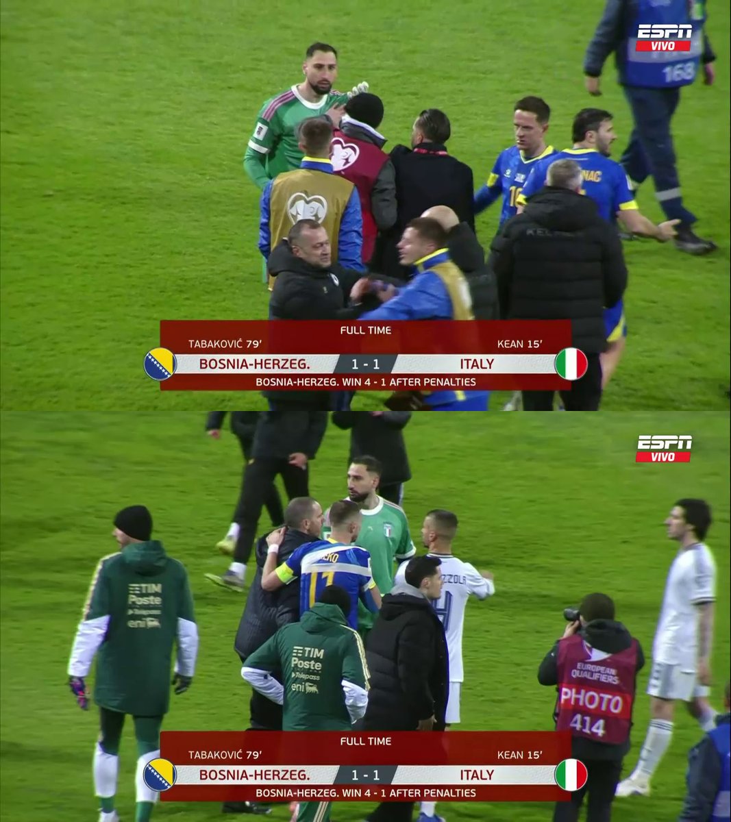 Must-win match for the Italian national team.Shots at halftime: Bosnia 13-2 Italy.Kean's 0-1 (after a blunder by the Bosnians) so far masks yet another absolute failure by the Azzurri.