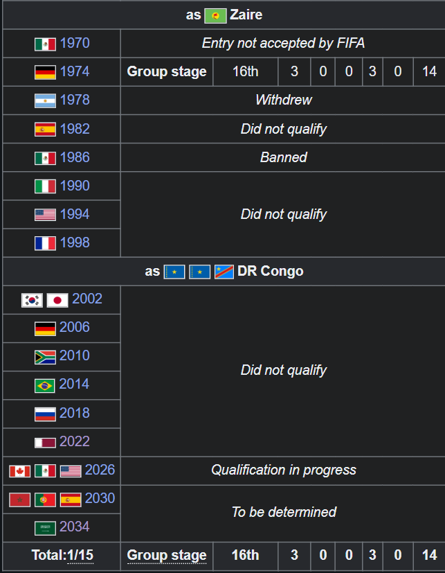 https://en.wikipedia.org/wiki/DR_Congo_national_football_team#FIFA_World_Cupdamn, wiki bros are fast lol