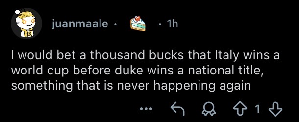 This is insane right? Surely Duke has a better chance at winning a Championship before Italy, no?