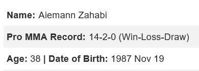 >Yan broken back>Merab broken nose>Umar rapedSuga Sean vs Zahabi will be for the interim title