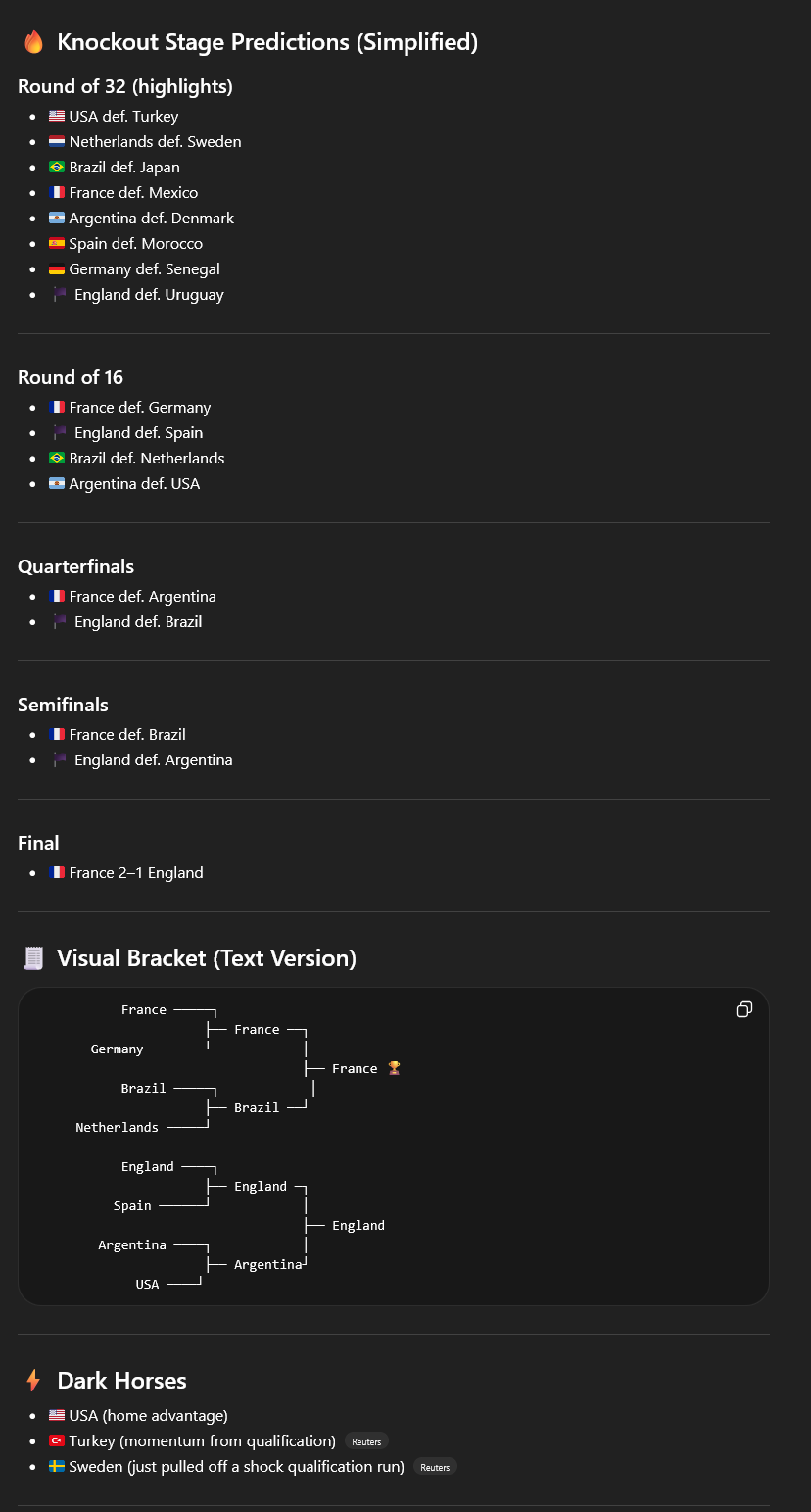 I asked ChatGPT to predict the 2026 World Cup. Here's the result.It doesn't knot the difference between Round of 32 and 16