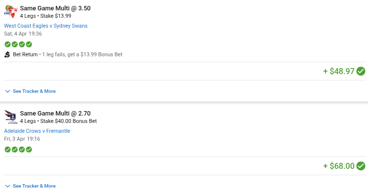 >>154109784Gold Coast will win their Wildcard game then get knocked outSydney will lose theirs in Melbourne against Collingwood.I've seen the script for this year.