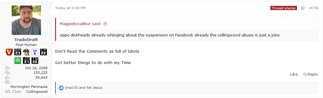 >>154109921Try focussing more on Carlton, travis.It's not all clothing oiptional training sessions and clothing optional bbqs with the lads.