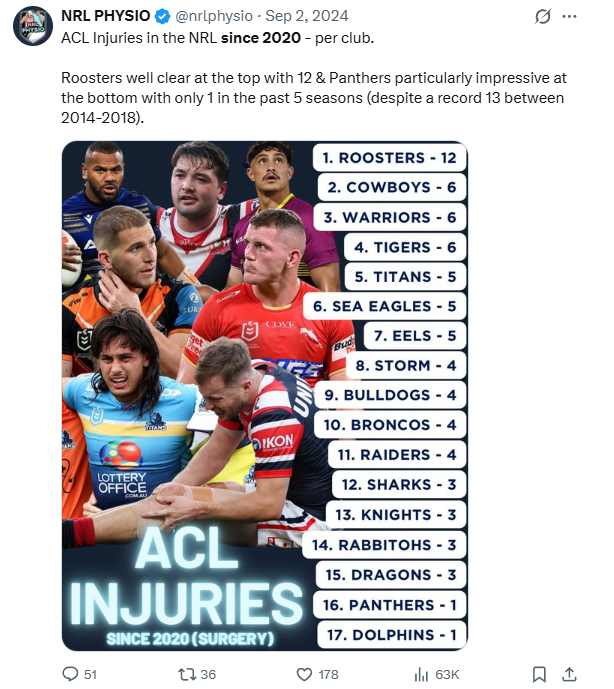 >>154118996Quirk of the math. Dolphins entered the comp in 2023, so for that infographic it's only the 2023 and 2024 seasons, whilst for everyone else it's the 2020, 2021, 2022, 2023, & 2024 seasons. Averaging it out it'd be 2.5 ACLs for the Dolphins over 5 years.
