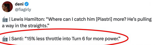 >lewis, we're gonna need you to drive 2% gayer to catch up to piastri