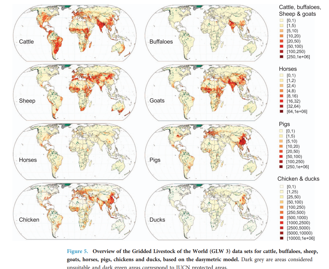 >Cattle, buffaloes, horses, sheep, pigs, chickens and ducks