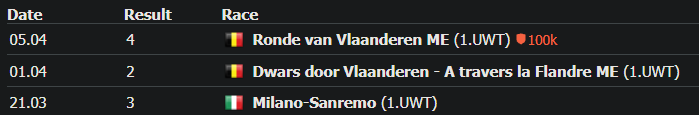 This is just a good, solid classics campaign that anyone can be proud of. Few riders do better