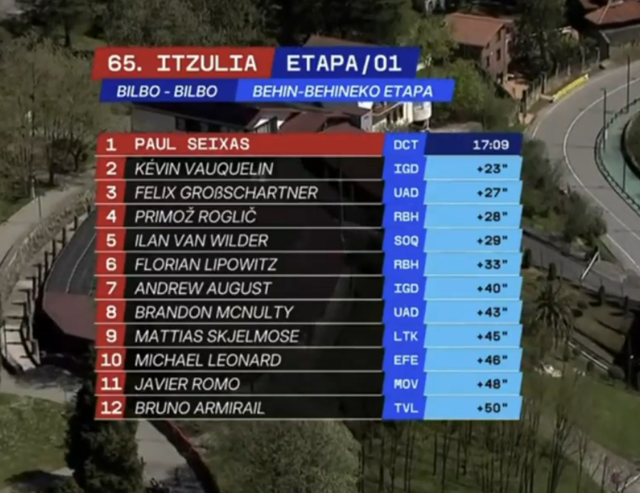 >Seixas articulates the role of the wind. I wrote in the prelude that the first ones might have an advantage. It looks like they did, but that can't explain why Vauquelin, who was also running late, crushed Ayuso and Del Toro. Nor can it explain the poor climbing times, because it meant that they had more tailwind on the climb.