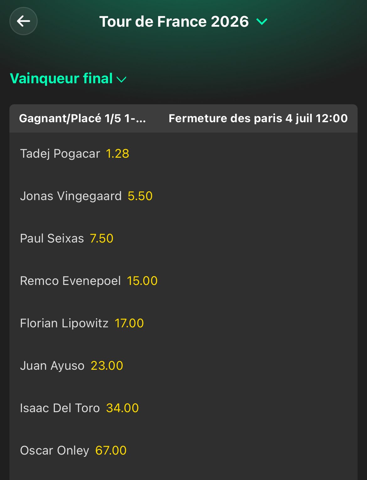 Seixas is the third favourite for TdF GC in the betting odds btw. Above Remco