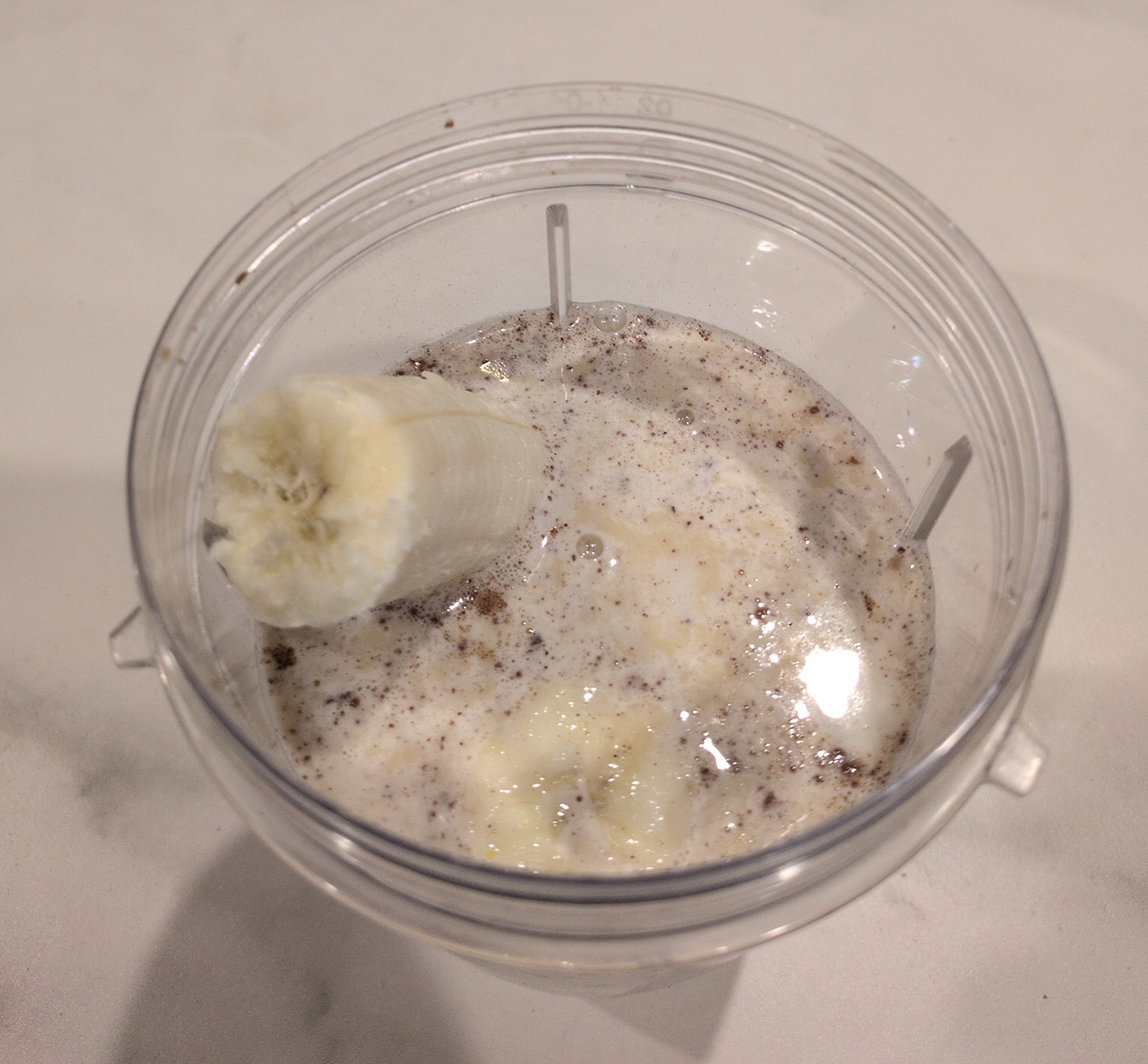 The smoothie.Uncle Tobys Traditional Oats.LSA MealPea ProteinINC Dynamic Whey - VanillaCinnamon1 bananaHalf water - Half low-fat milk