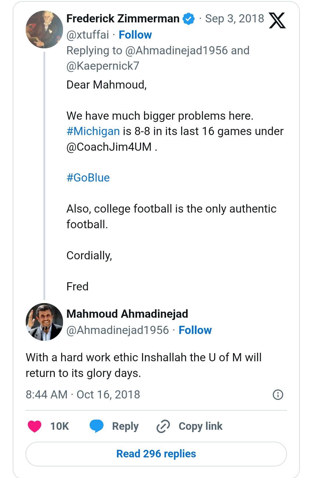 >inherits championship game level program from white coach>runs it into the ground in a few years>new white coach takes over fixes your shit and brings a natty in TWO YEARSWhy, exactly, must we continue with the black experiment in all sectors of life?