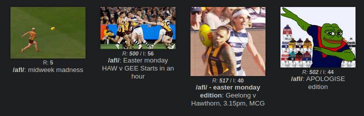 >>154141128>Three bump limit threads still haven't been pushed off the catalog yetIs this entire board just /afl/, /heem/, and one guy posting in his /nrl/ threads?