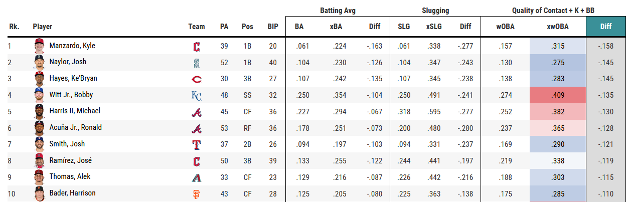 The unluckiest hitters so far this season