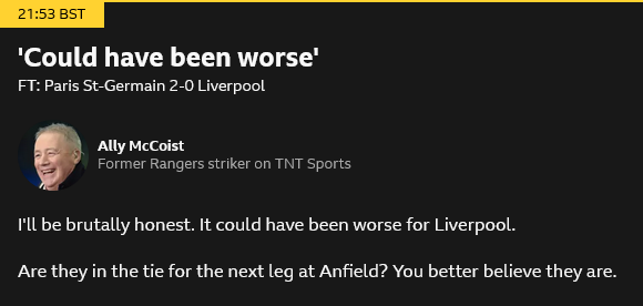 incredible level of copium on tnt basically considering a 2-0 loss against the european champions a good result