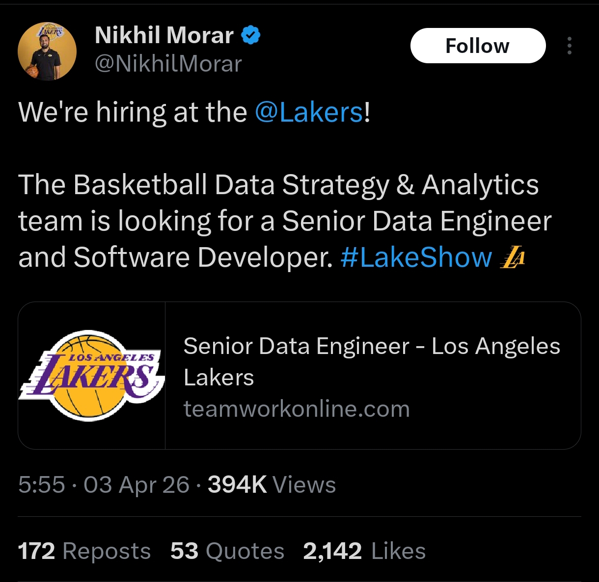 >>154160542I was the one that suggested we do /Lakers/ so we have a non Pete/schizo thread