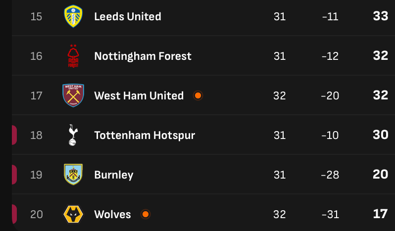 >>154174578When was the last time Spurs were in the relegation zone after Xmas