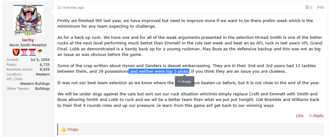>>154183402the irony is that everyone was carrying on that this draft had the greatest top 6 of all time, and you HAD to get into the top 6. harley reid, colby mckercher, zane duursma, jed walter, nick watson and ryley sanders.bulldogs traded the farm to get that pick 6 (pick 11 + their future first).then it turns out the next 5 picks were far better in every way.tragic.