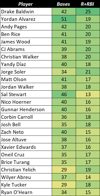 >>154185690wOBA I can understand some misgivings, but wRC+ makes a better case for offensive showing. RS/RA isn't controlling for park factors. Not telling you how to do your work, of course, and there's nothing wrong with a simplef/readable approach. Hell, I respect ya Winky