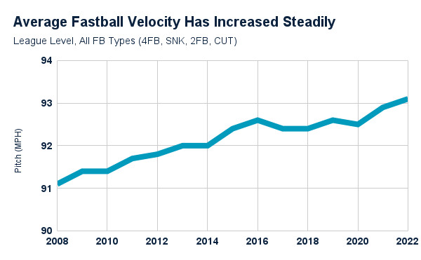With fastball speed continuing to rise (and no trend of stopping), i assume by 2035 we will see 110 mph being the new high end fastball. mason miller is already routinely touching 105, as well has chapman despite his age.i dont think theres any sign we have hit a limit, or even come close to one. if you analyze the chart here, theres about a 1.3 mph increase (adjusted for variance) in average per 2 years. by this, we can forecast average fastballs of:2026: 962028: 97.22030: 98.52032: 100.72034: 101.9…2040: 103.2…2050: 109.4you can call me retarded but the math is literally on my side