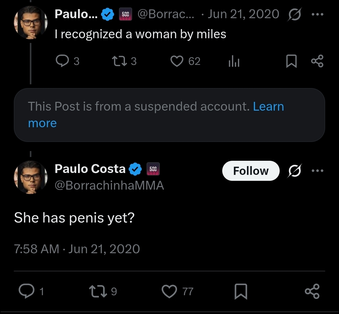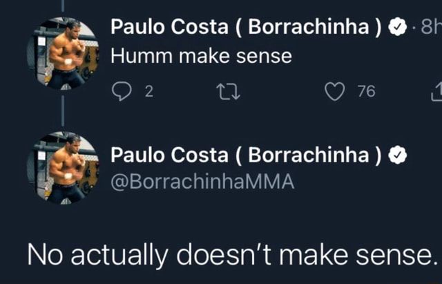 >>154200022Top ranked Light Heavyweight Paulo Costa, now that's a string of words I never thought I would ever see together. Could Whittaker actually have chance as well?